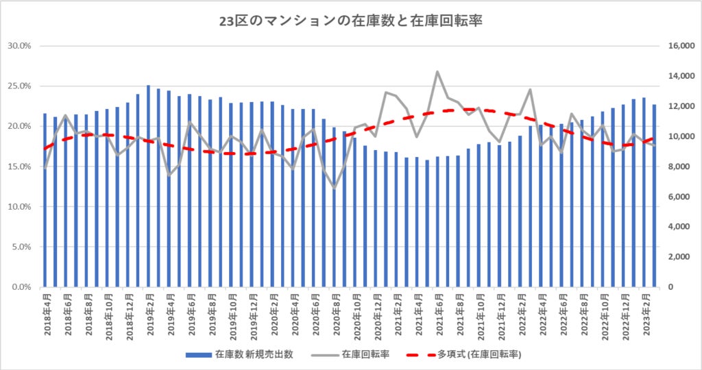 いずれのエリアも在庫数は増加傾向にあるものの、コロナ前の水準にまでいたっていません。在庫回転率もまた、コロナ前と比べると高い水準にあります。よって、いまだ需要が強いマーケットだといえるでしょう。
