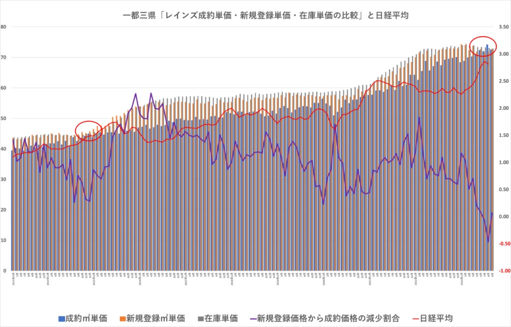 <速報!>ついに!?平行線になった成約・在庫・新規の価格の謎を紐解きます。8年前(2015年)にも同じ現象が起こっていたことが判明!