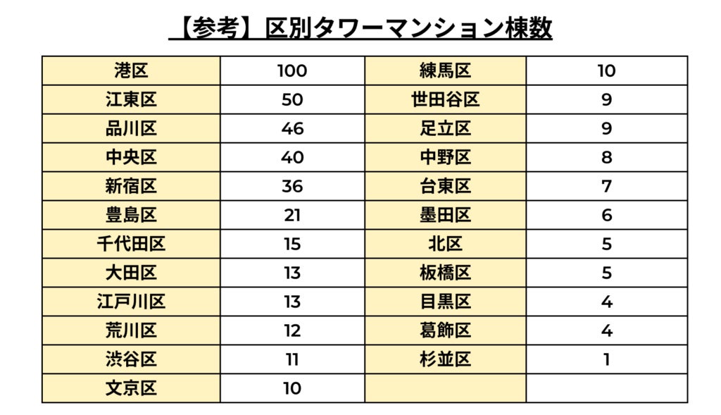 2023年10月の成約マンションをエリア別で見ると、23区内のトップは港区、2位は江東区となりました。両区に共通しているのは、タワーマンションが多いということ。そのため、両区の成約マンションのうちタワーマンションが占める割合も調査いたしました。