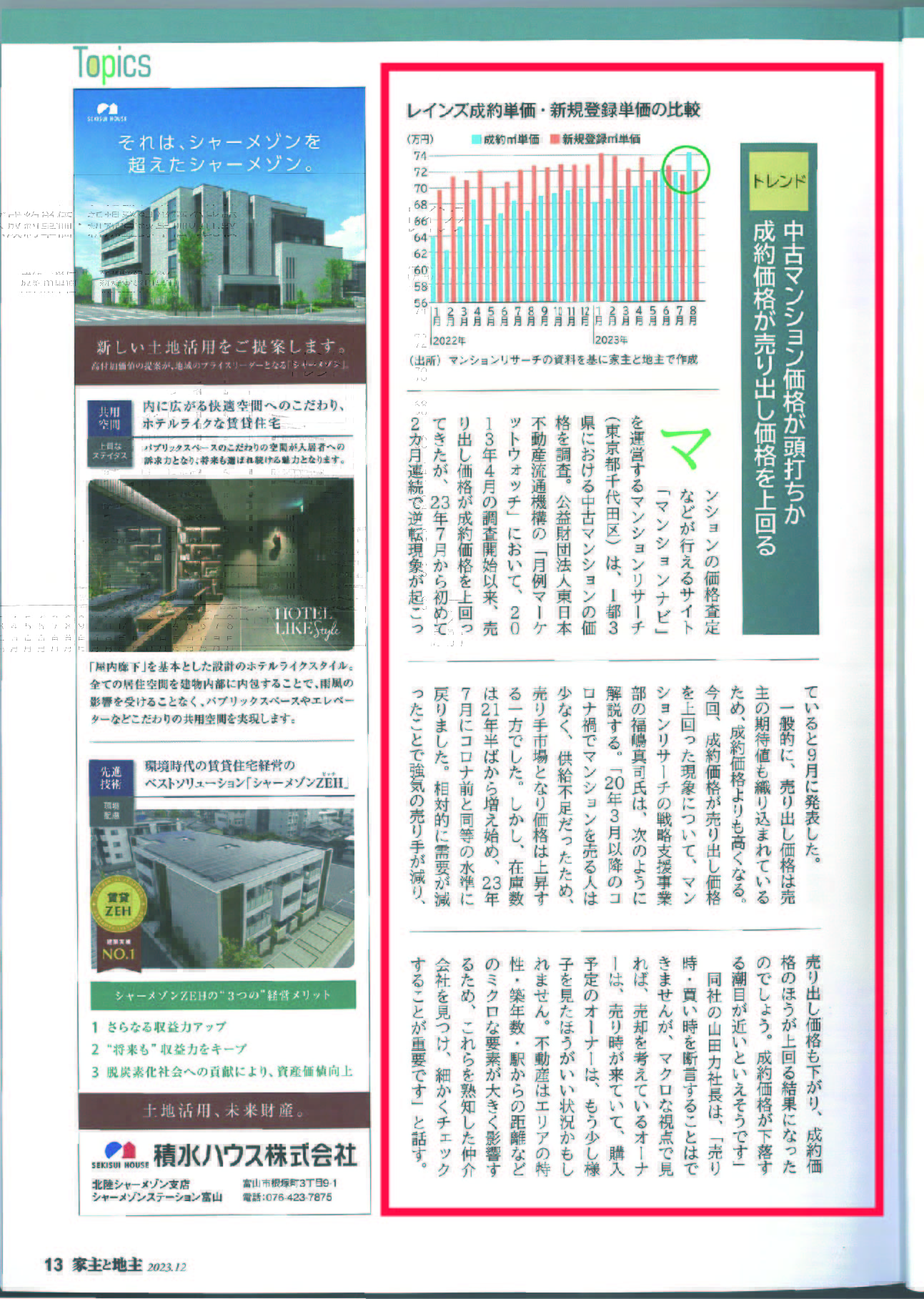 弊社のデータ分析結果と解説が雑誌『家主と地主(雑誌・電子版 2023年12月号)』Topics記事として掲載されました。