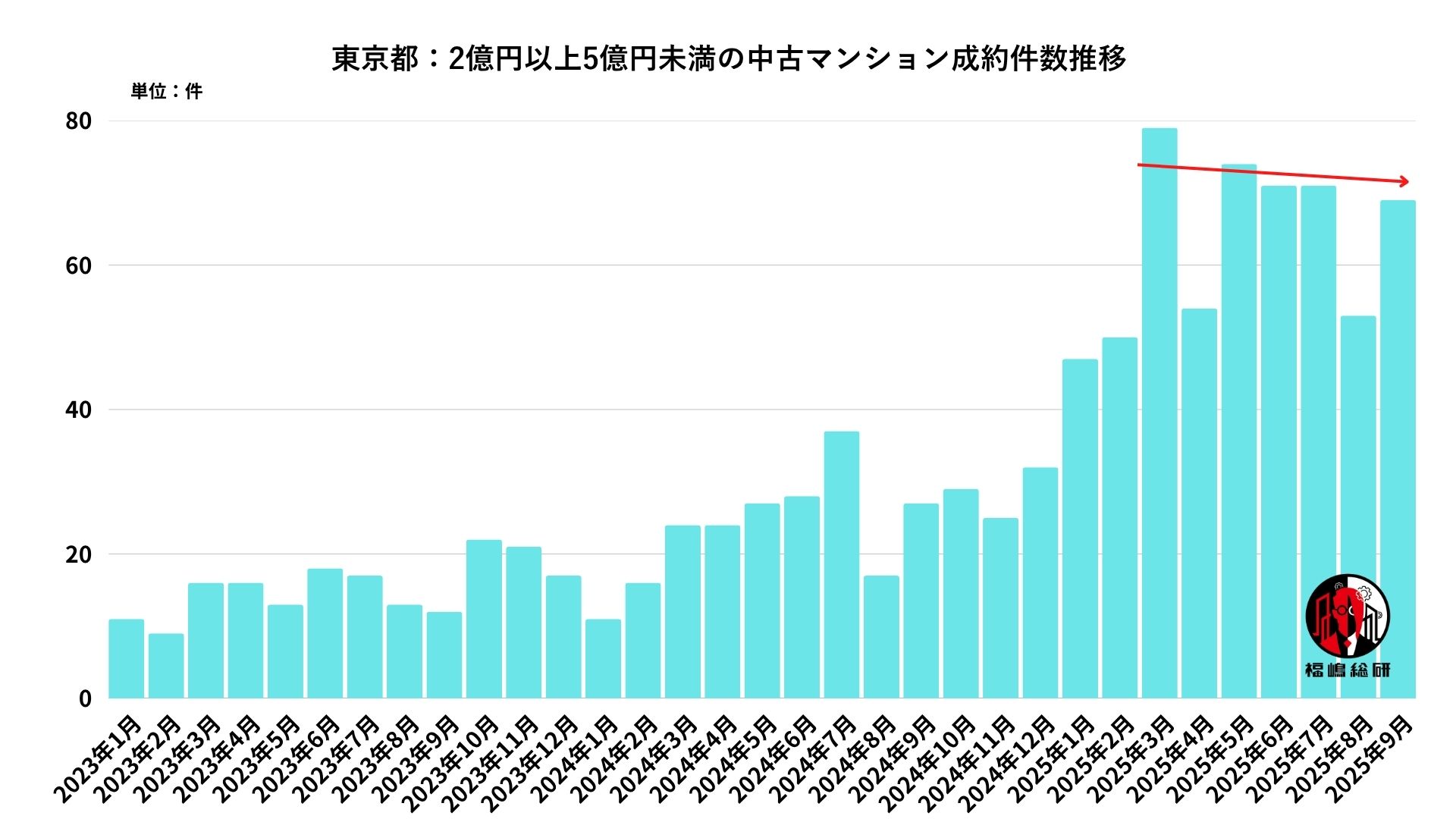 2億〜3億円という価格であっても、立地がやや外れると100㎡を超える物件は減少傾向にあり、逆に都心一等地では80㎡前後でこの価格帯に達してしまうケースも多く見られます。価格と満足度のバランスが崩れ、結果的に「買いたいが納得できる物件がない」状態に陥っているのです。
